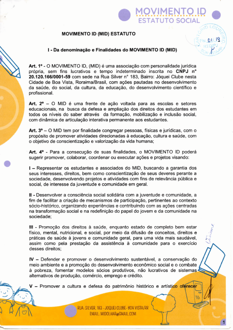 O documento que estabelece a estrutura, o compromisso ético e a governança do Movimento ID, assegurando a missão de desenvolver tecnologias e empreendimentos de impacto.